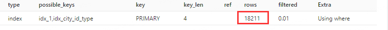 我们可以使用 force index(idx_city_id_type) 让该语句选择我们设置的联合索引:
