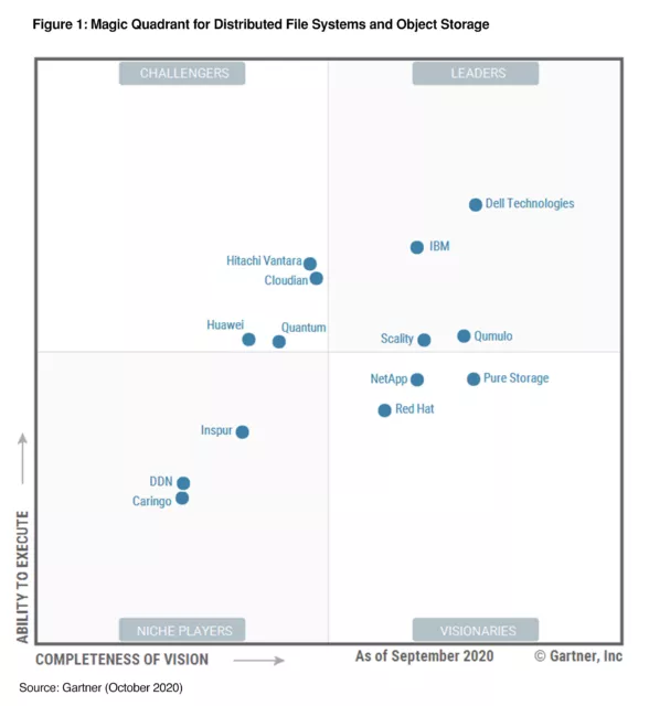 在Gartner近期公布的《2020年分布式文件系统和对象存储魔力象限》报告中,戴尔科技集团就位列榜首,再一次展现了其强大的技术实力和领先优势。而自2016年Gartner首次发布该报告以来,戴尔科技集团已连续五年实现了“霸榜”。