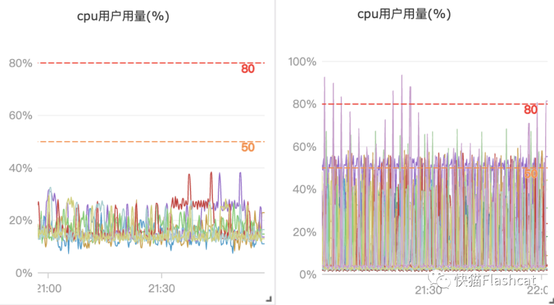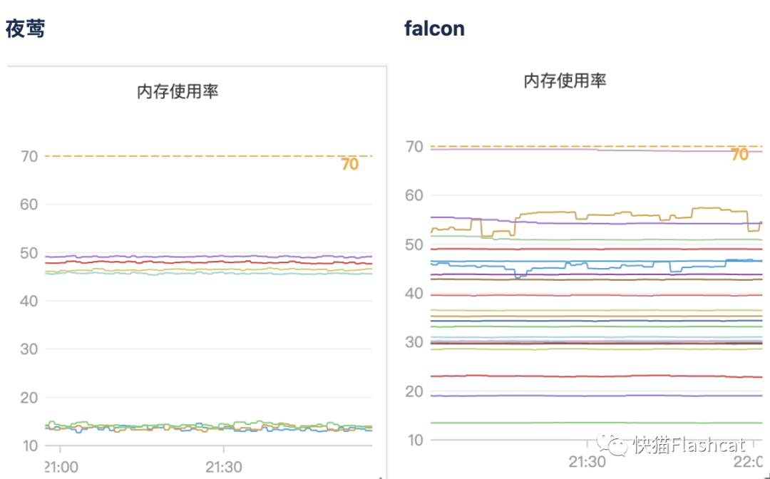 节约了大量机器成本,夜莺监控比 open-falcon 节约86%的成本,整个平台机器量由原来的80台降低为20+台; 采集成本降低,比如采集 kafka、zk、consul 等中间件,不再需要开发工具去抓取,直接用 prometheus 采集远程写入到 n9e-server; 更灵活的告警和看图功能,满足目前业务需求; 监控性能提升: