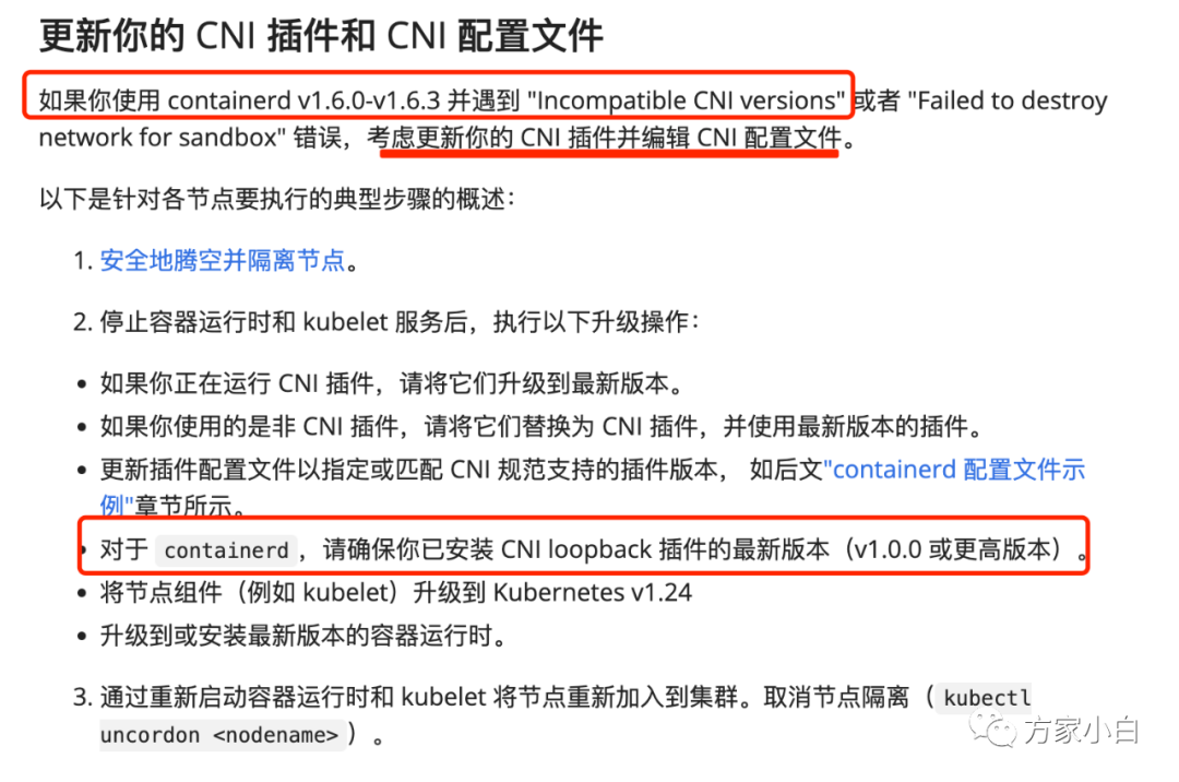 具体内容可以看这里:https://kubernetes.io/zh-cn/docs/tasks/administer-cluster/migrating-from-dockershim/troubleshooting-cni-plugin-related-errors/#updating-your-cni-plugins-and-cni-config-files