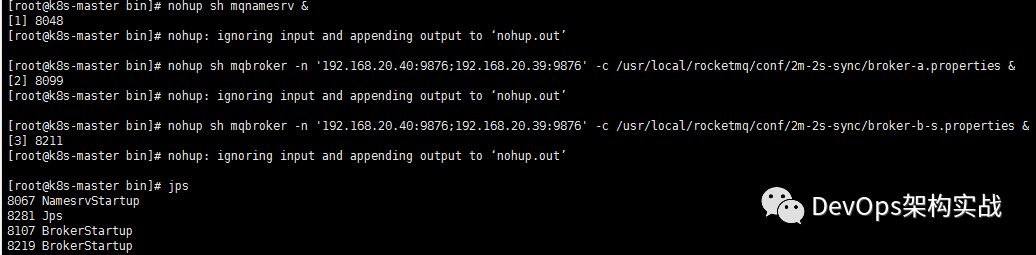 [root@k8s-master bin]# nohup sh mqbroker -n '192.168.20.40:9876;192.168.20.39:9876' -c /usr/local/rocketmq/conf/2m-2s-sync/broker-b-s.properties &