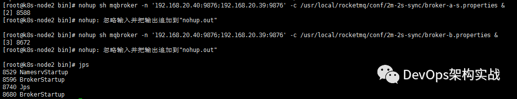 [root@k8s-node2 bin]# nohup sh mqbroker -n '192.168.20.40:9876;192.168.20.39:9876' -c /usr/local/rocketmq/conf/2m-2s-sync/broker-b.properties &