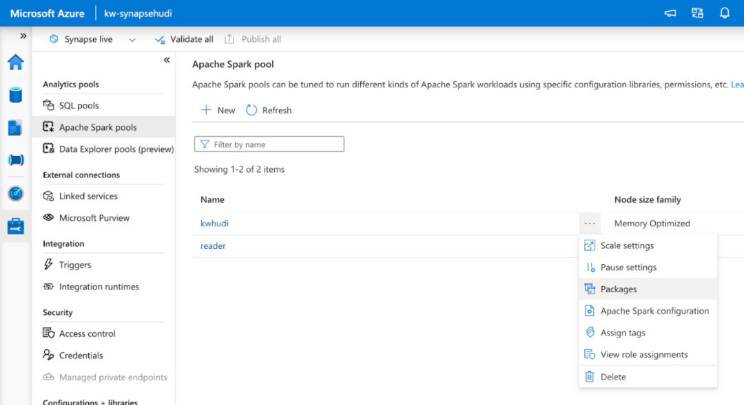 准备条件 - 将 Hudi 包添加到 Synapse