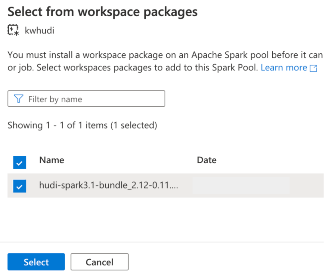 如何将包安装到 Synapse 工作区的信息,请参阅文档: [https://docs.microsoft.com/en-us/azure/synapse-analytics/spark/apache-spark-manage-scala-packages](https://docs.microsoft.com/en-us/azure/synapse-analytics/spark/apache-spark-manage-scala-packages)[12]