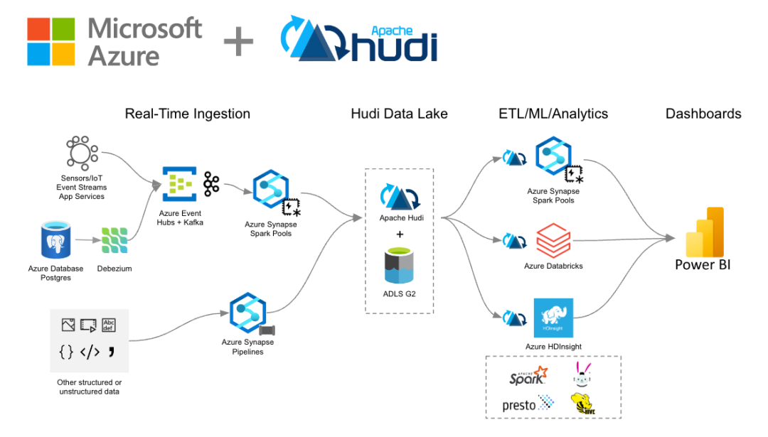 希望这提供了有关如何开始在 Azure 上使用 Apache Hudi 的指南。虽然本文专注于 Azure Synapse Analytics,但这并不是 Azure 产品组合中唯一可以使用 Apache Hudi 的产品。以下是在使用 Apache Hudi 在 Azure 上开发数据平台时可以考虑的一些架构的想法