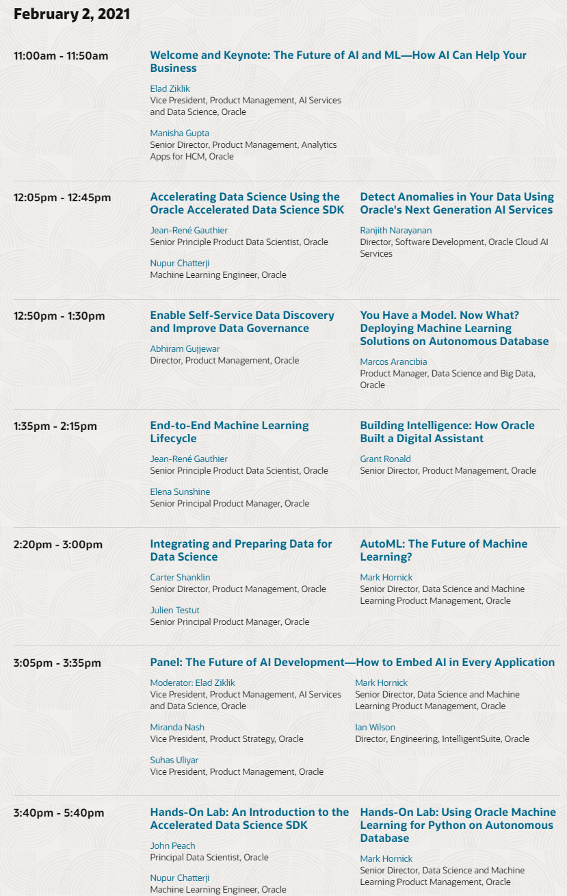 2021年2月2日北京时间11:00,Oracle数据科学团队为大家提供数据科学线上培训,线上培训的注册地址为:https://developer.oracle.com/developer-live/ai-ml-enterprise/