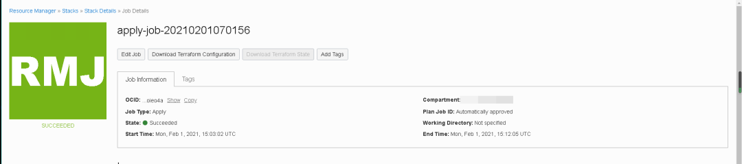这个Job将运行几分钟的时间,当Job运行完成,将显示如下界面。