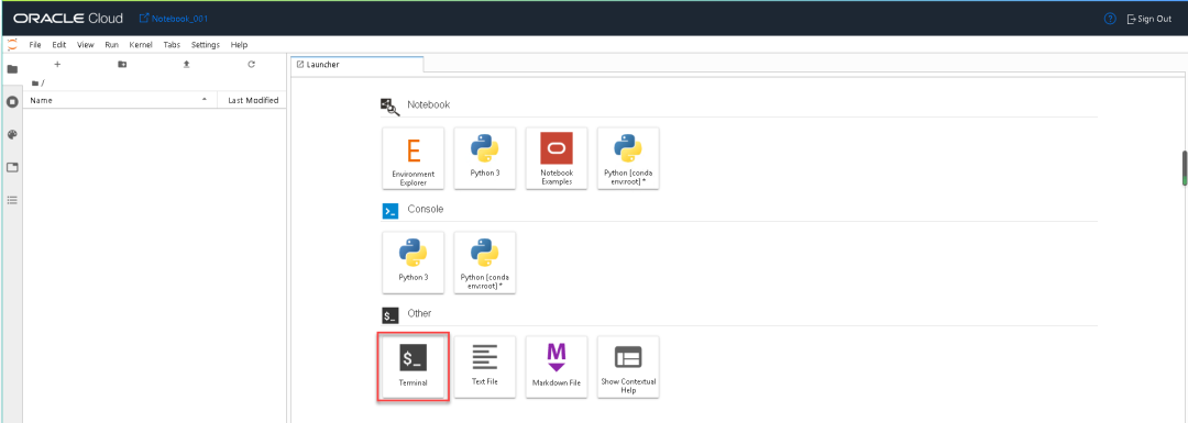 进入notebook之后,您将看到如下界面,为了实验的顺利进行,我们先配置实验环境。首先打开Terminal命令行工具。