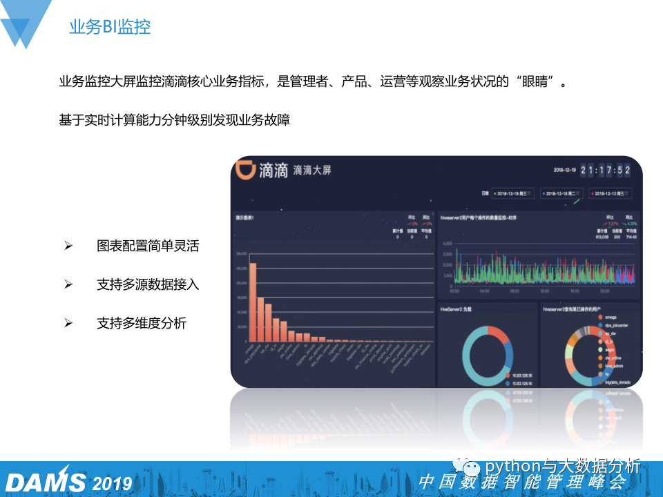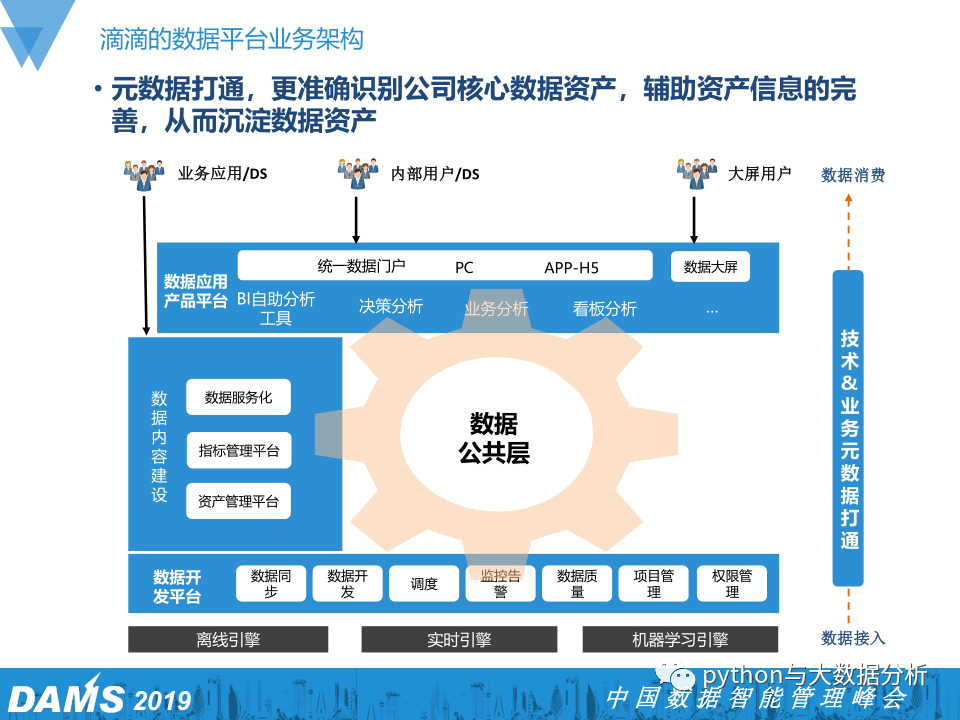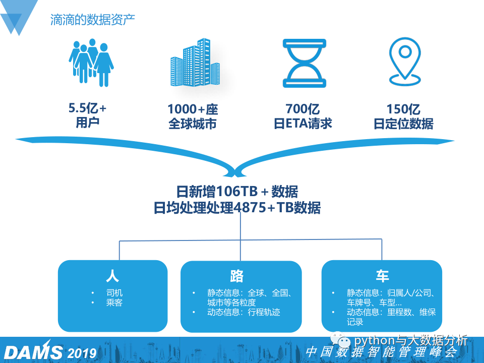 滴滴数据每天数据量约100T+,和一个中小型省级移动公司数据差不多,但比较好奇的是滴滴如何能实时采集到数以百万千万级的源端数据,和物联网规模比较相似;其次不得不佩服互联网公司在研发工作上的投入,数据资产的全自动管理和数据开发平台是密切相关的,绝大多数公司的元数据、数据质量和数据开发过程是分离的,导致元数据和数据质量无法适应动态变化过程,结果是元数据和数据质量最终与生产相脱节而失败;不管最终有多大用处,但弟弟订单数据毫秒级更新和实时大屏呈现彰显了滴滴的技术实力。