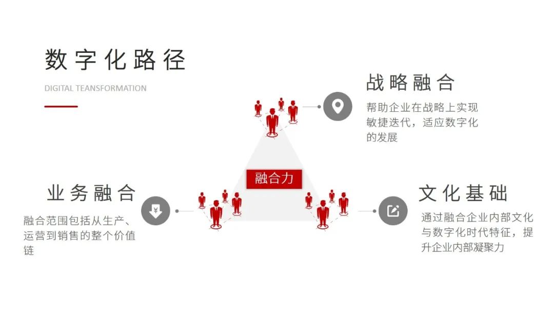 企业如何准确地判断时代的发展趋势?如何在战略、业务以及文化层面与数字化时代发展需求进行融合?又如何从业务经营层面来促进企业实现数字化转型?这就不得不提到数字化转型中的一种力——融合力。
