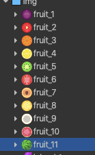 整个游戏共 11 种水果(当然也可以添加或者改成其他的东西),如果每种水果都像上面去手动生成预制资源然后分别初始化,那也太繁琐了,我们需要解决动态渲染多种水果的方式。