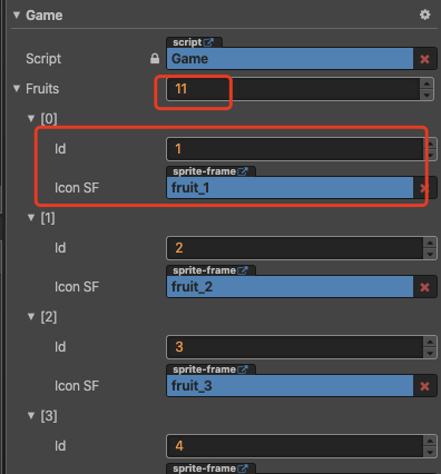 // Game.jsproperties: { fruits: { default: [], type: FruitItem },}