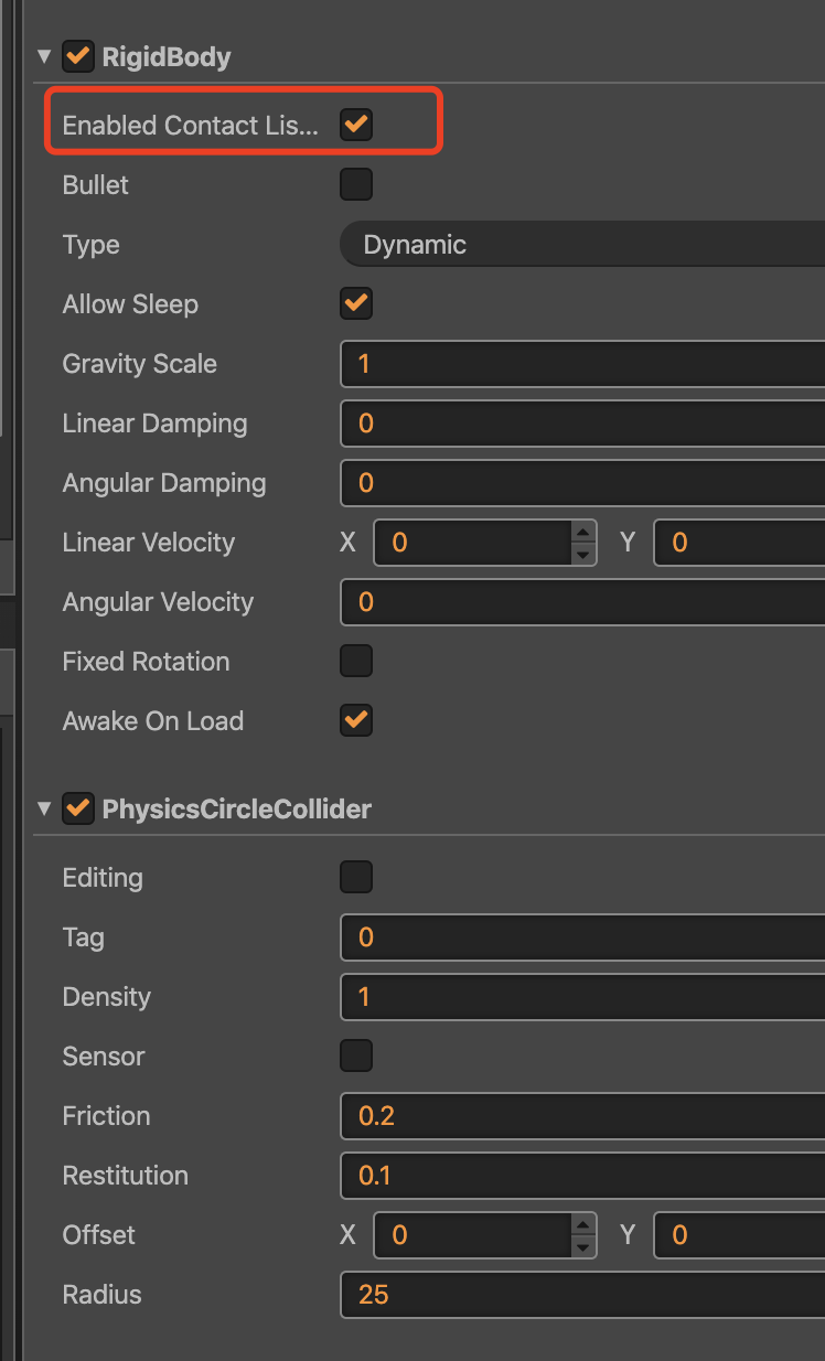 现在我们就开启了游戏世界的物理引擎,然后还需要配置需要受引擎影响的节点,也就是我们的水果。