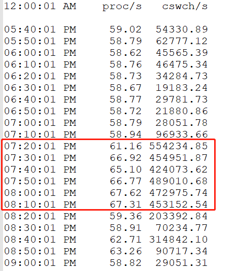故障期间发生了大量的上下文切换: