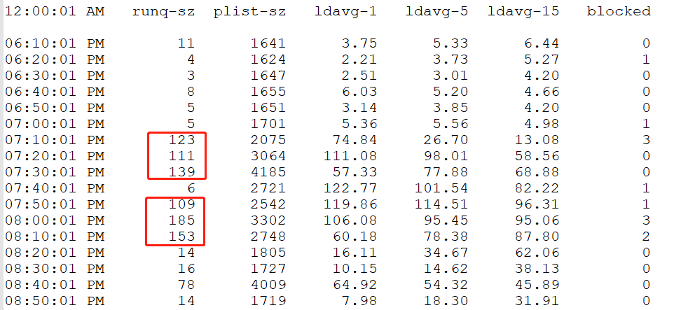 runq-sz:Run queue length (number of tasks waiting for run time).