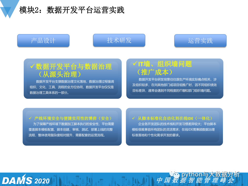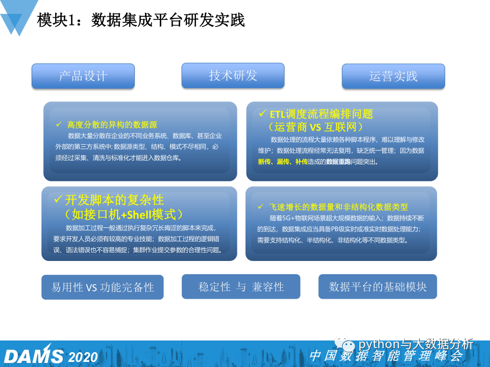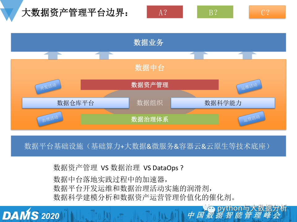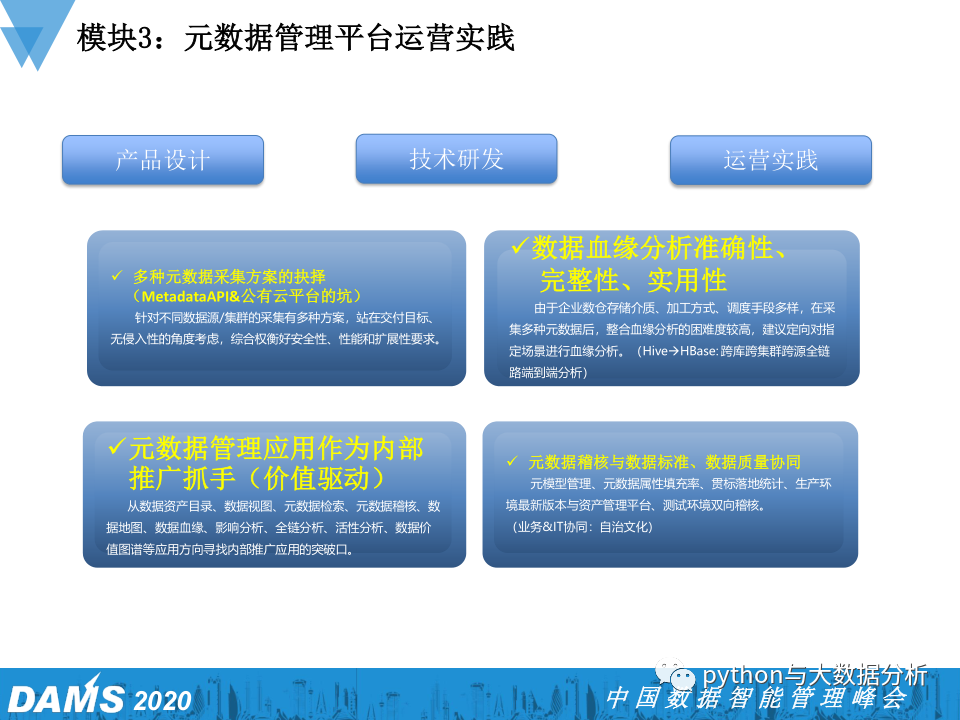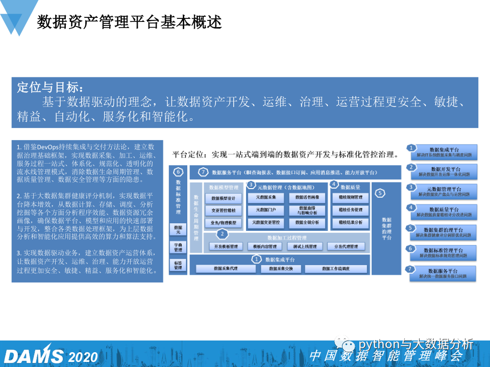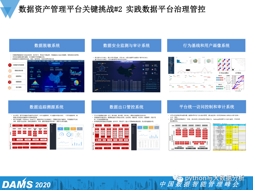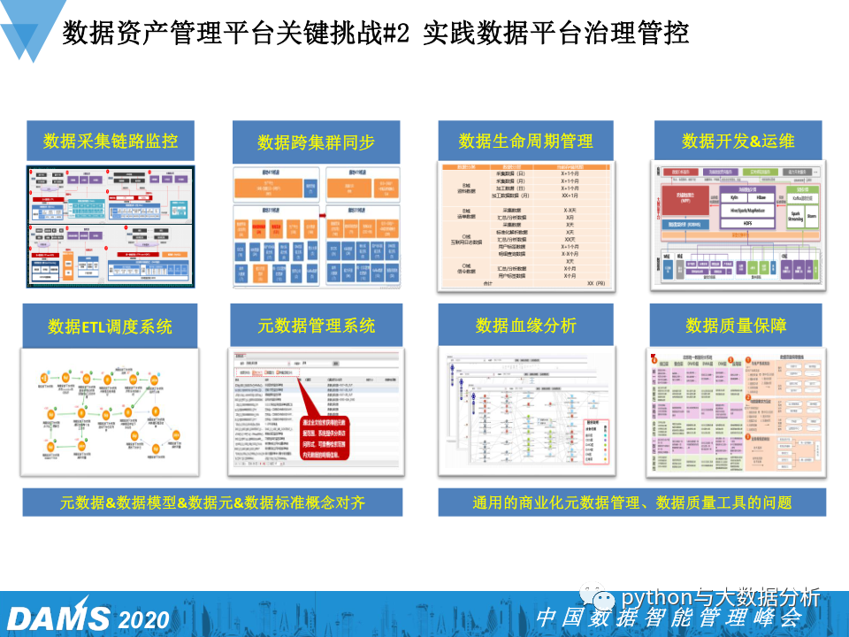 回到正题上,中国联通在DAMS中国数据智能管理峰会上做了大数据资产管理平台设计与研发实践的分享,三大运营商在大数据平台建设、数据资产管理上在业界还是做的不错的,在数据资产管理上,联通提到的集群治理平台产品还是值得借鉴的,定位上基于Hadoop集群底层组件运行机制和大数据开发运维等组织活动进行多维交叉洞察,以降本增效为中心,向下保障大规模Hadoop集群算力,向上指导数据治理动作实施和业务连续性。原则是自底向上,用大数据的技术手段解决大规模数据集群治理层面的各种问题,大数据集群治理平台针对大数据集群和数据加工流程进行精细化监控分析,从资源画像、存储画像、作业画像、RPC 画像、冗余计算挖掘、数据血缘分析、用户行为告警八大维度几十个小维度交叉洞察可优化作业和业务处理流程,不断驱动集群资源优化。