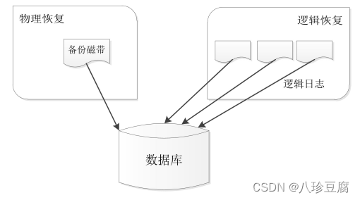 恢复过程分为物理恢复和逻辑恢复两个部分。物理恢复是通过恢复零级备份、一级备份或二级备份来恢复 dbspace 和 blobspace 的过程。逻辑恢复是指在物理恢复之后,通过磁盘上的逻辑日志备份重做或撤销相关事务,将数据库恢复到故障前状态的过程 如图所示。