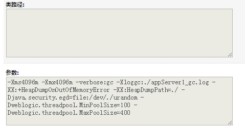 在服务器启动参数中增加了以下参数,根据压力测试情况可适当调整内存及线程设置数值。