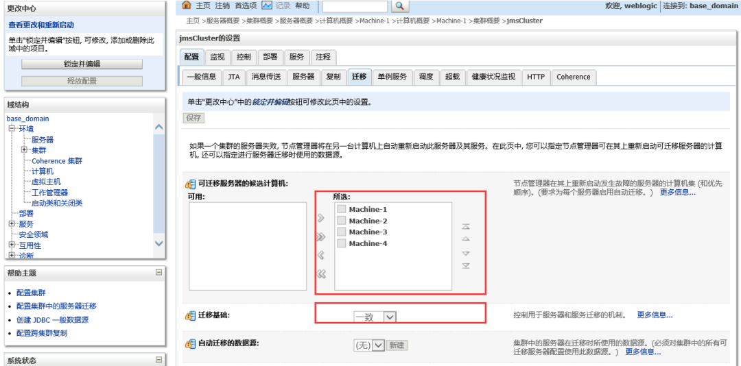 点击集群名称,进入集群设置界面,点击配置,选择迁移标签页,设置迁移基础为“一致”