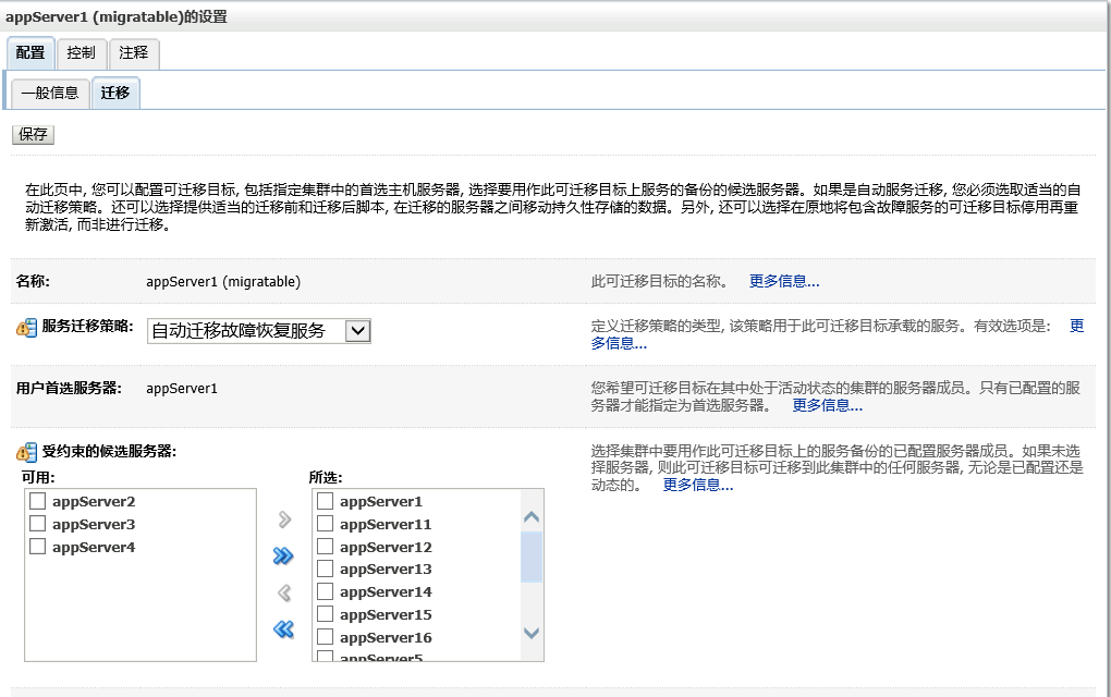 设置受约束的候选服务器,注意排除当前计算机上的服务器,使可迁移目标服务器所在计算机不同。如appServer10所在计算机是Machine-3,故相同机器的appServer9、appServer11、appServer12都不在选择范围之内。