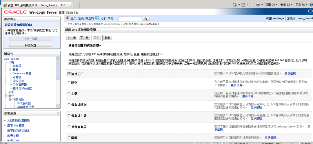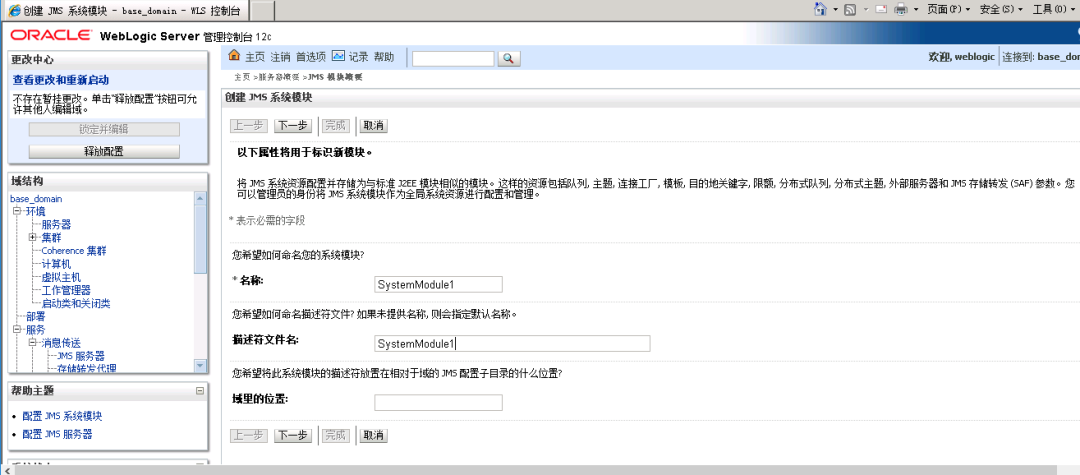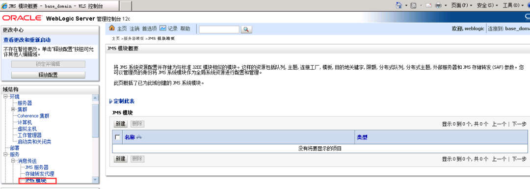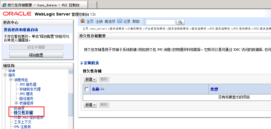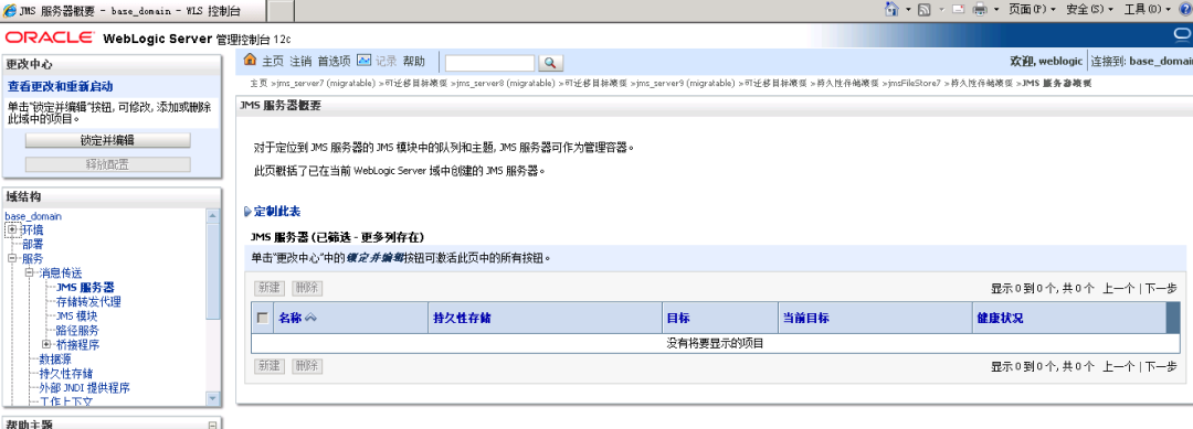 点击服务->消息传送->JMS服务器,打开JMS服务器概要
