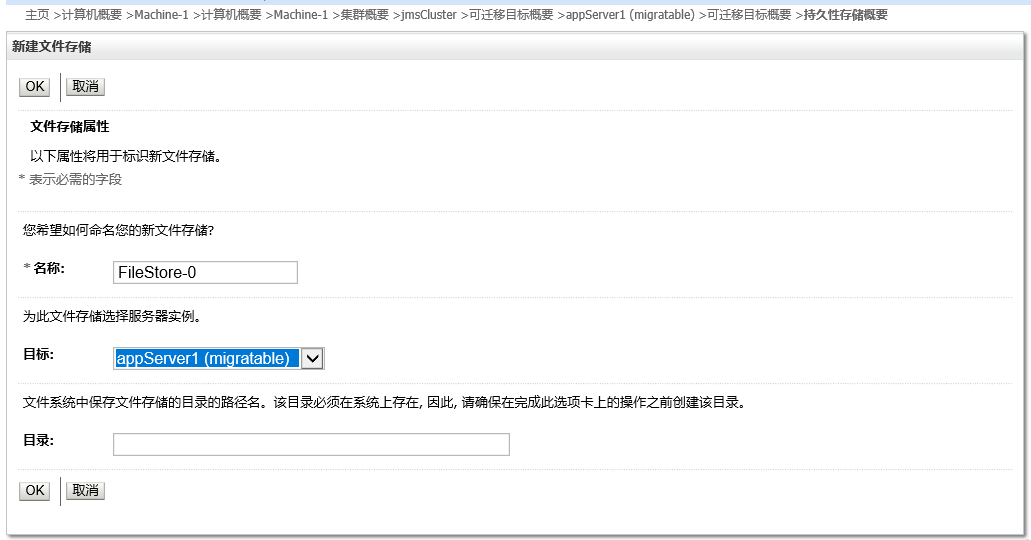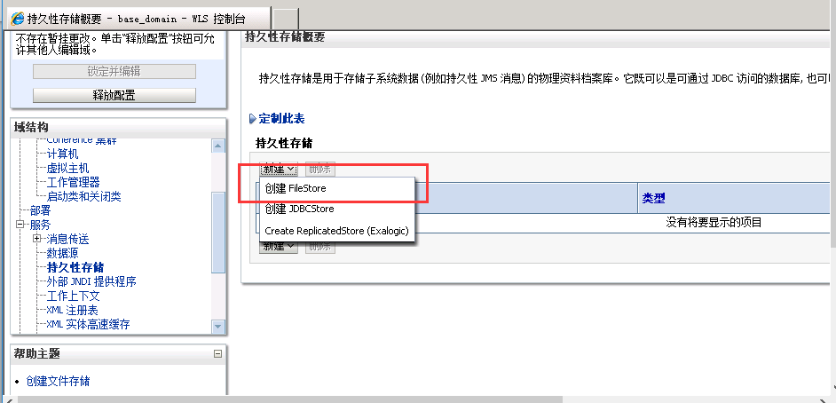 锁定并编辑,点击新建按钮,选择“创建FileStore”