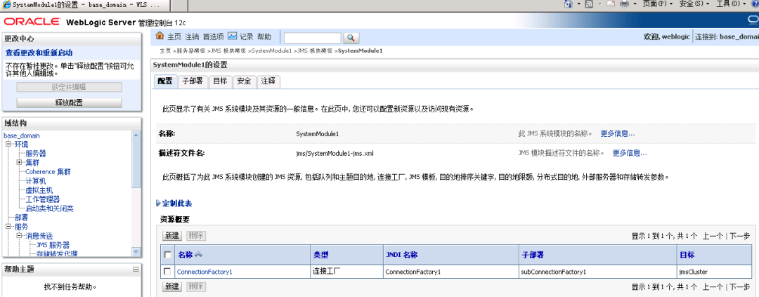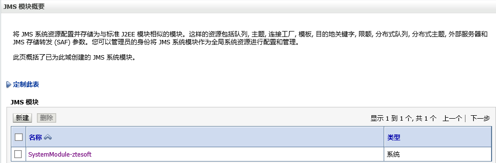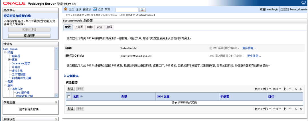 点击服务->消息传送->JMS系统模块,打开JMS系统模块概要界面