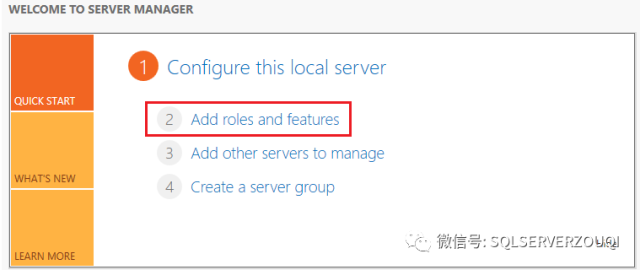 1,打开服务器管理器(Server Manager),选择“Add roles and features”