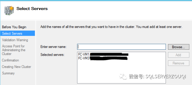 输入集群的结点服务器名称,节点服务器必须位于相同网段中,能够相互访问;