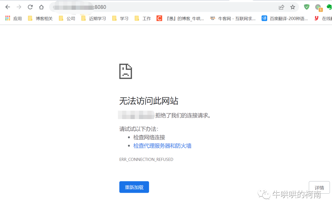 后,访问8080端口 ,不能访问,效果如下: