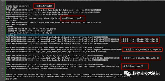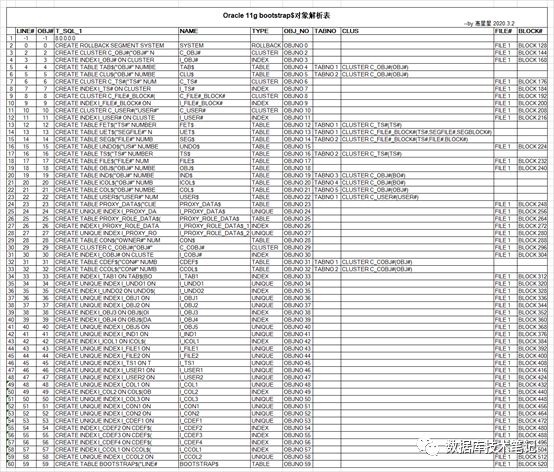 通常,Bootstrap是一种将计算机程序的前几条指令加载到活动内存中,然后使用它们来加载程序的其余部分的技术,在Oracle中,Bootstrap指的是在打开数据库之前加载元数据(数据字典),Oracle数据库中object_id小于59(11g: 59,10g: 56)的为Bootstrap objects,其中包括表/索引/集群对象,Bootstrap objects包含数据库中最重要的元数据,是启动实例的必需对象。Bootstrap objects对象解析结果如下所示,