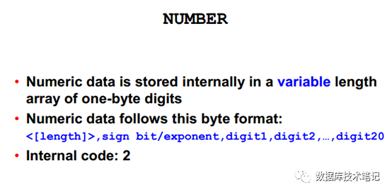Oracle数据库number类型的物理二进制存储结构,由可变长度的单byte数字数组组成,Number类型的格式由,长度,指数,(数据1,数据2..数据20)三部分组成,本节主要通过手工计算的方式,解析以下示例,