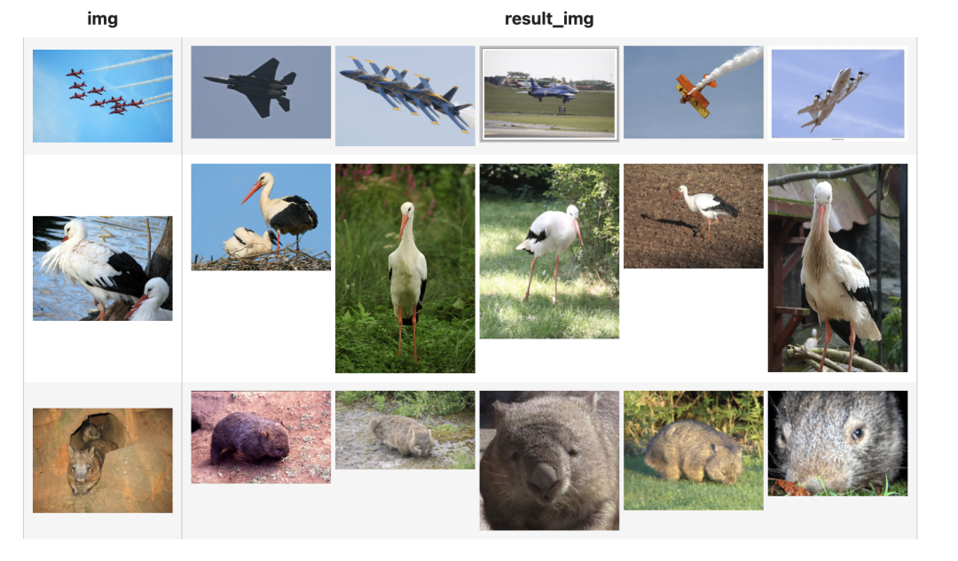 Gradio⁵为机器学习模型提供 Web 演示界面,我们所熟知的 Huggingface 的 Demo 界面也是利用它实现的。Gradio 支持上传和展示图片,如图 7 所示,我们可以利用它实现一个以图搜图可交互的服务,可以在它生成的 Web 界面中上传一张图片,来查询与其相似的其他图片。