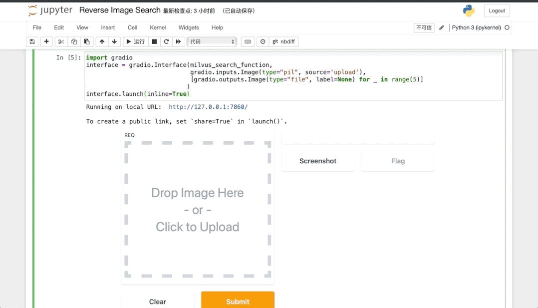 Gradio 的使用十分简单,我们只需要定义查询图片的函数image_search_function