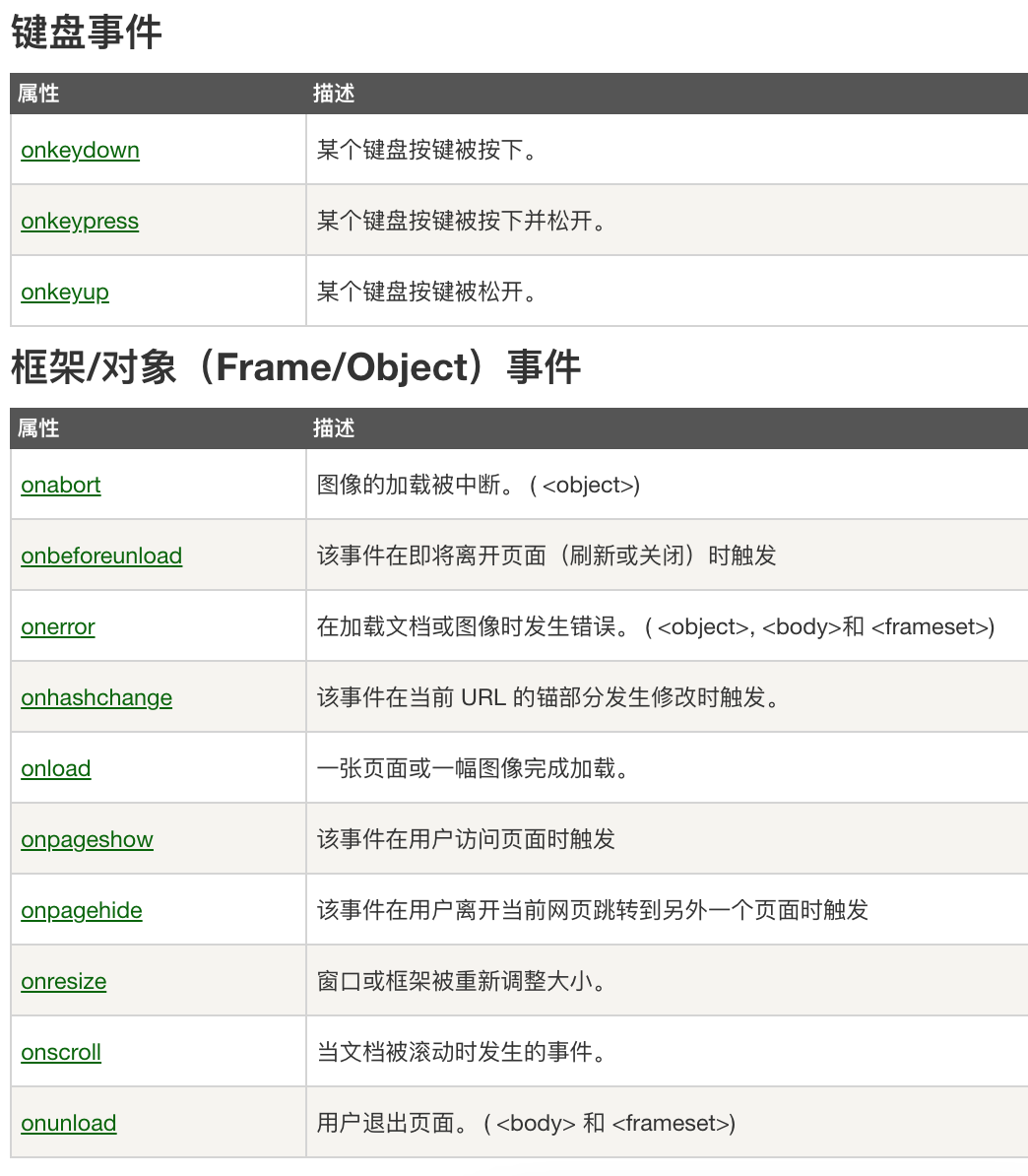 在项目需求里面会经常遇到拖移,点击等等事件的编写。dom里有哪些事件呢?