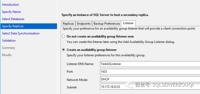 创建一个可用性组的侦听器,实际上是虚拟的服务器,