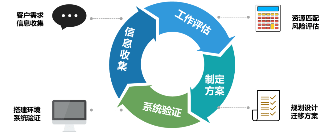 为此,拓林思设计了迁移评估的验证流程,通过信息收集、工作评估、规划方案、实际验证4个环节,精准、快速地完成迁移工作量和风险评估,确定最优方案,显著提升迁移评估工作效率。