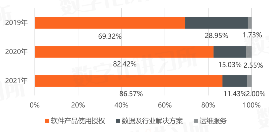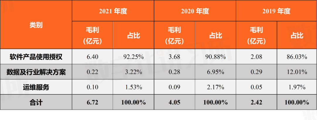 据公司招股书,达梦数据主要业务收入来源于软件产品的使用授权,其次是数据及行业解决方案,只有极少一部分营业收入来源于运维服务。近三年来,软件产品的使用授权为公司带来的营收占比从69.32%上升到了86.57%,这是由于公司的软件产品种类不断丰富,能够满足更加多样化的需求,且软件产品的市场认可度也不断提升,客户增加。