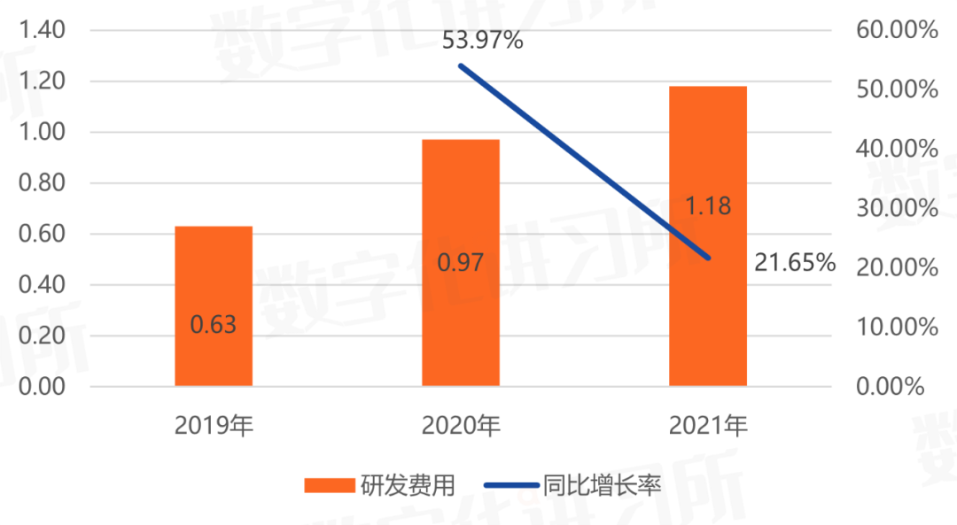 图4:2019年2021年达梦数据研发费用及增长率(亿元)