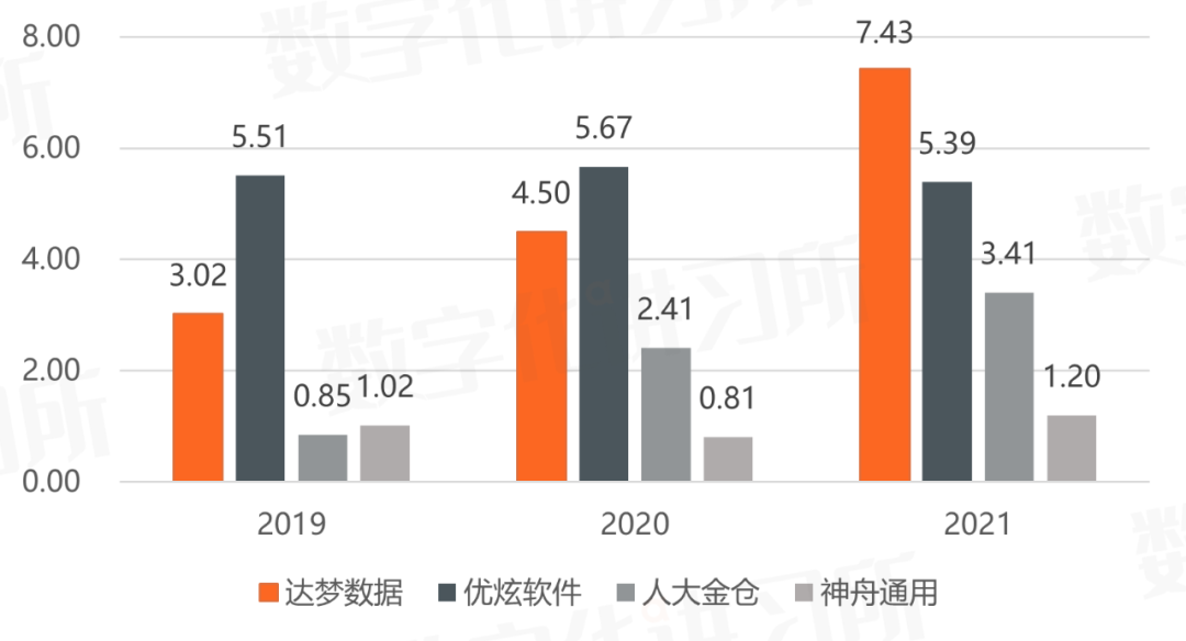 图1:2019年到2021年达梦数据营业收入(亿元)