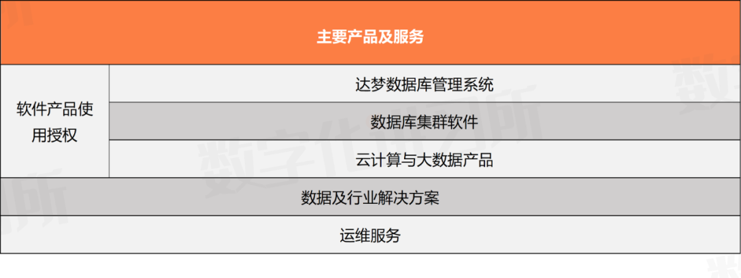 按照业务类型的不同,达梦数据主要产品及服务包括软件产品使用授权、数据及行业解决方案和运维服务等。