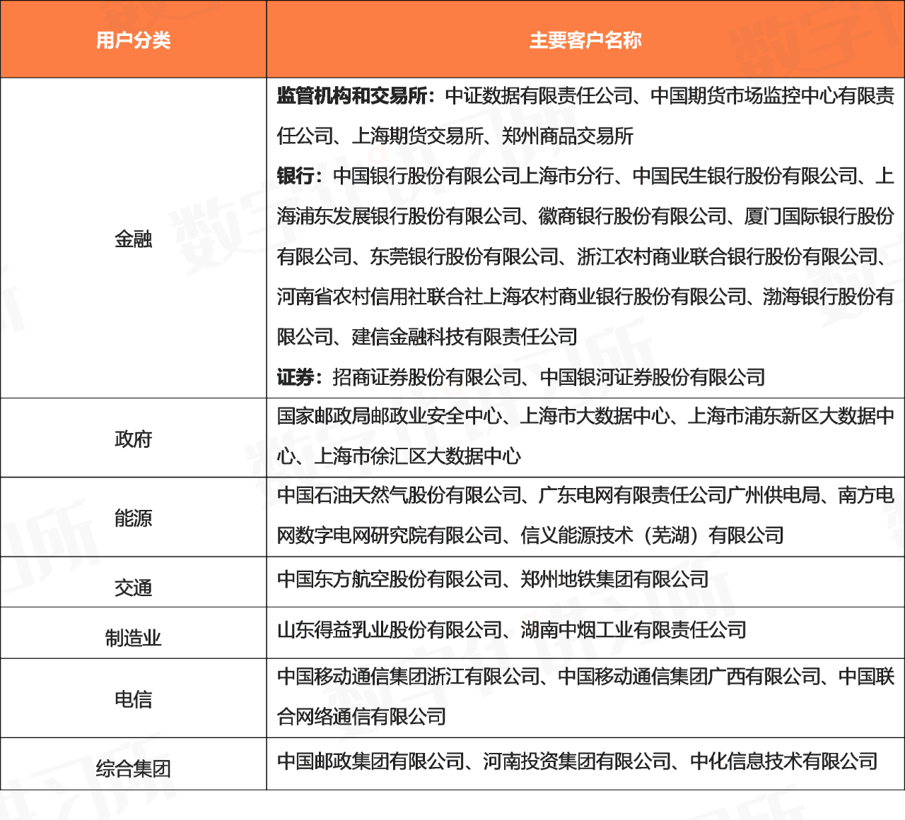 近年来,大数据等新兴技术的应用速度发展较快,越来越多的企业利用大数据平台进行企业数字化转型。截至招股说明书签署日,星环科技已累计有超过1000家终端用户,代表客户有财政部、上海期货交易所、中国银行、中国石油、国家电网、北京地铁、中国东方航空、三大运营商、北京大学、复旦大学、微医集团、西门子、北京电视台等,分布在金融、能源、交通、政府、运营商、教育、医疗等20多个行业,具备广泛的客户基础。