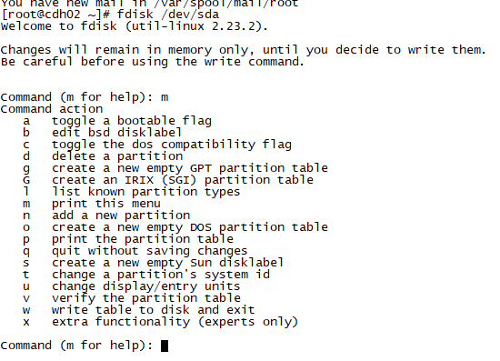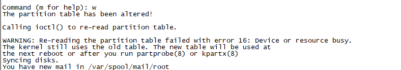 4) 最后写入分区表,在Fdisk命令位置输入:w