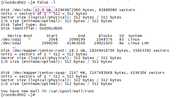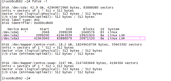 5) 此时输入如下命令,就可以看到我们新创建的dev/sda3分区了,分区格式为Linux LVM类型。