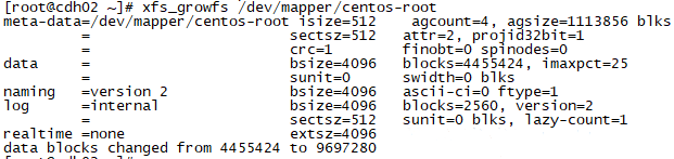 #文件系统进行扩容,以让系统识别,输入如下命令(只适用于CentOS7)