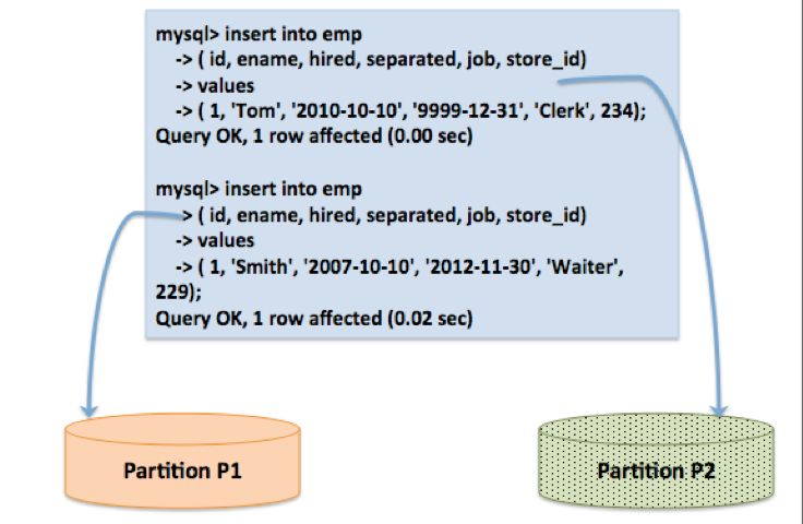 其实对于一个表达式“expr”,我们是可以计算出它会被保存在哪个分区中,假设将要保存记录的分区编号为N ,那么“N = MOD(expr, num)”。例如,emp表有4个分区,插入一个store_id列值为234的记录到emp表中: