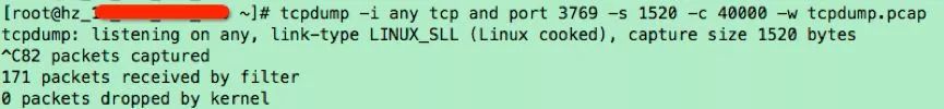 # 只抓3769端口的包,每个包最大为1520字节,最多抓40000个数据包,抓到的包写到tcpdump.pcap文件,方便后面做分析