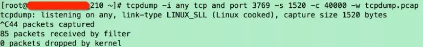 tcpdump -i any tcp and port 3769 -s 1520 -c 40000 -w tcpdump.pcap