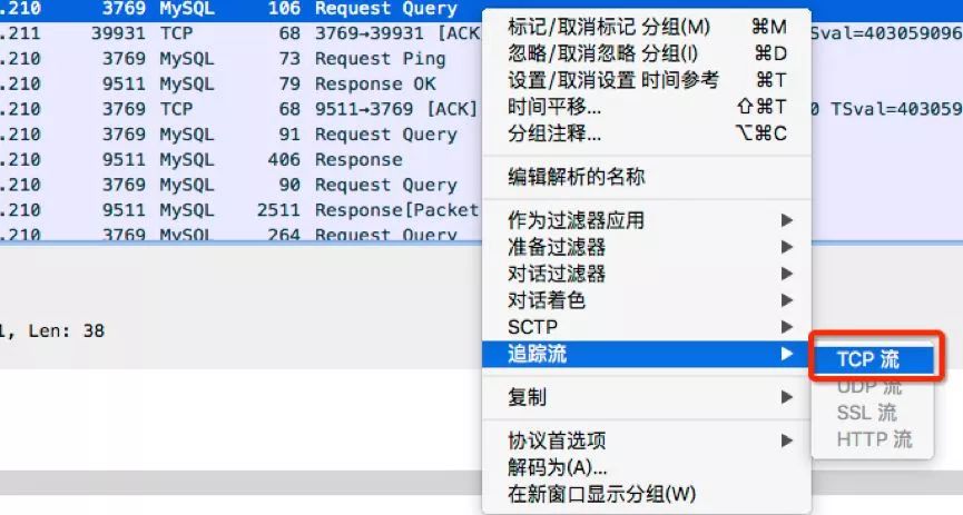 找到抓包时间内出现过密码错误的报错,抓包记录中有应用所在主机ip(Destination ip),数据库所在主机ip(Source ip),数据库端口(Source Port),错误时间(Time)。