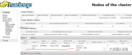 如图,yarn集群NodeManager仅剩一个节点felixzh。